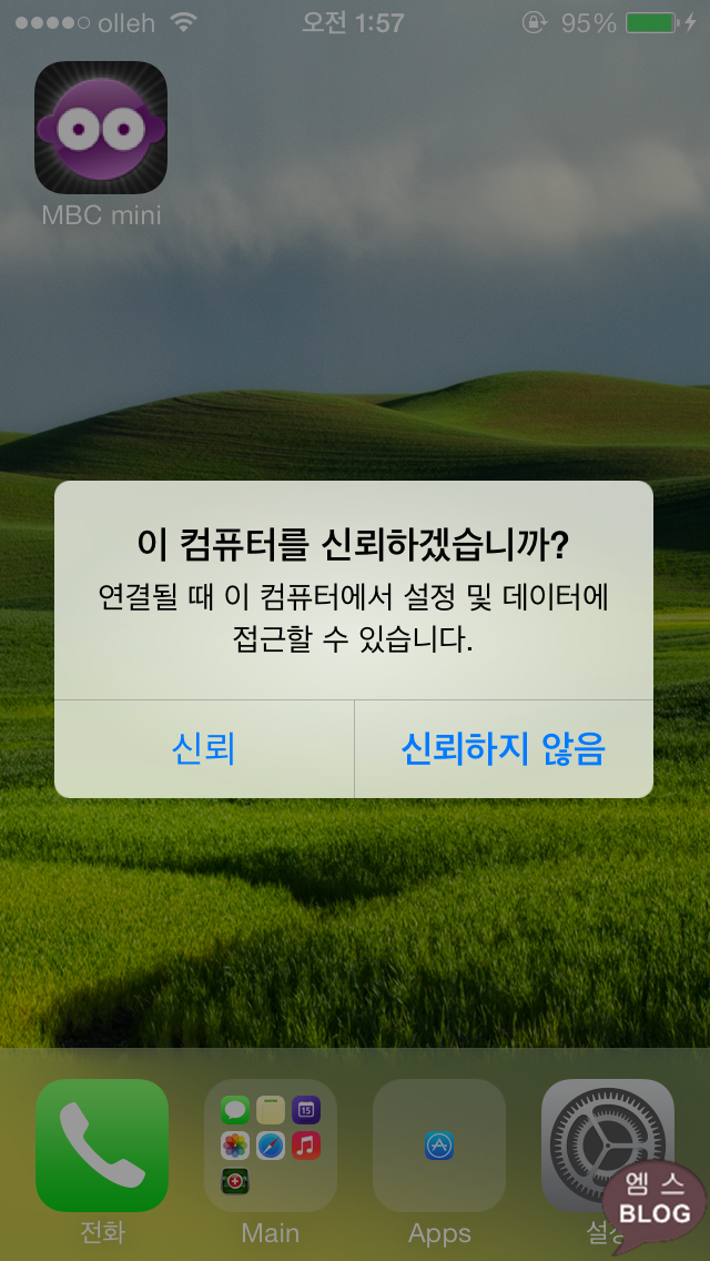 확인 후 바로 구매하고 충전을 해봤습니다. 위 그림처럼 팝업창이 하나 뜨는데요. 신뢰를 터치하면 충전 시작~! 정말 충전 잘 됩니다. 그리고 아이튠즈연결도 잘 됩니다.
