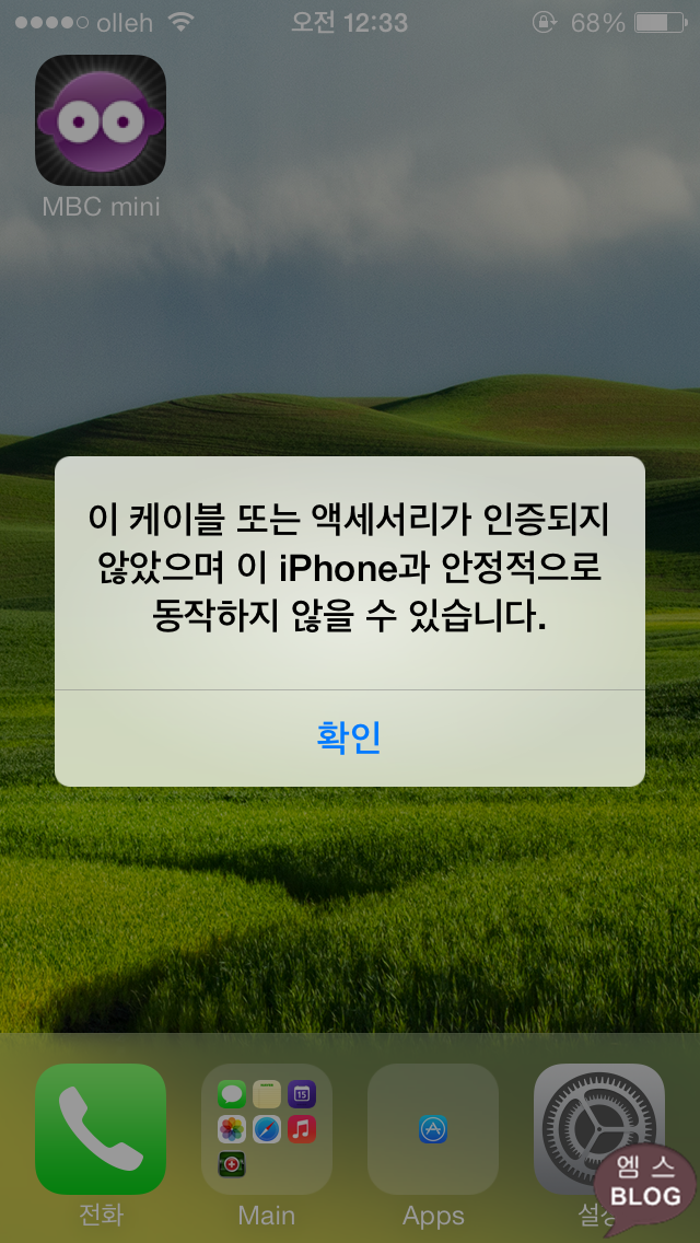 iOS7 충전오류, 아이폰5S를 충전해 주는 비정품 케이블 인증 제품