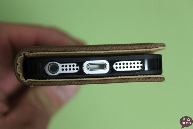 먼저, 케이스 측면 하단부 입니다. 이어폰 홀, 스피커, 충전단자 부분이 적당한 크기로 뚫려 있습니다.