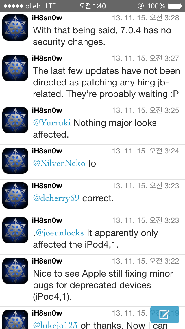 이번 iOS 7.0.4 버전 역시 애플이 탈옥을 할 수 있게 보안상의 빈틈을 남겨두었다고 하니, 탈옥을 기다리는 분들은 과감하게 업데이트하셔도 됩니다.^^
