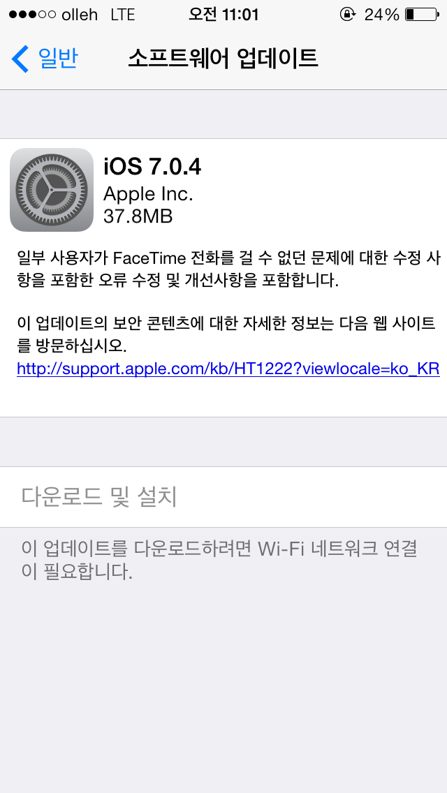 2013년 11월 15일 새벽2시, iOS 7.0.4 소프트웨어 업데이트가 있었습니다. iOS 7.0.3버전이 배포된지 약 3주만에 새로운 버전이 업데이트된 건데요. 이번에 업데이트된 버전의 내용은 간단했습니다.