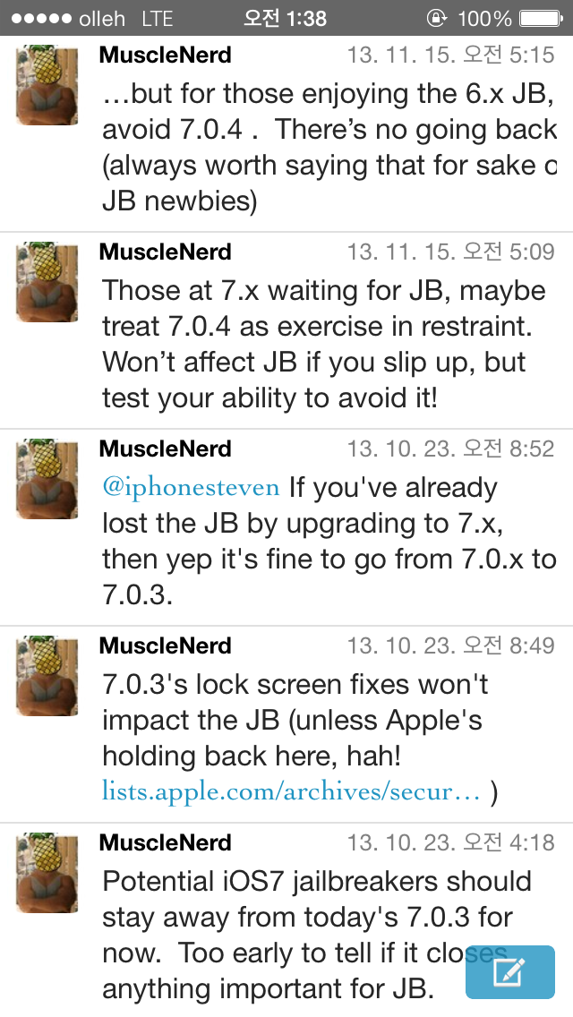 또한, iOS7 탈옥을 기다리는 분들은 매번 소프트웨어업데이트가 있을때마다 '이번 업데이트를 해야하나 말아야하나' 고민일텐데요.