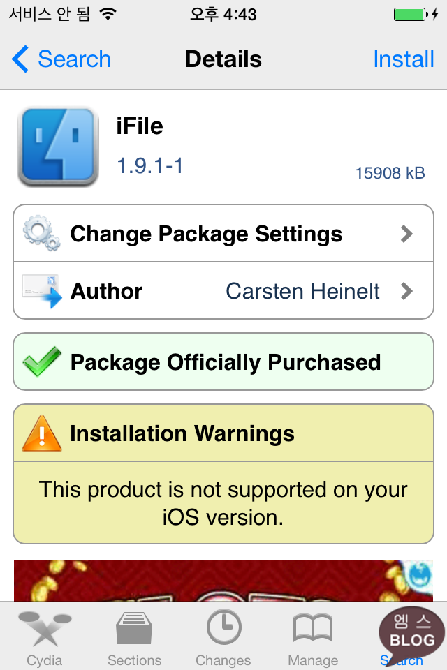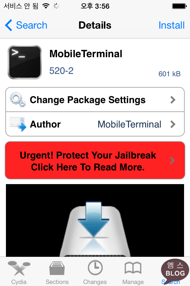 시디아에서 모바일터미널(MobileTerminal)과 iFile을 검색해 설치를 합니다. 이 트윅들을 설치하는 이유는 앞으로 시디아 트윅 설치 후 안정화 작업을 할때 필요하고 편리하게 작업을 할 수 있기 때문입니다.