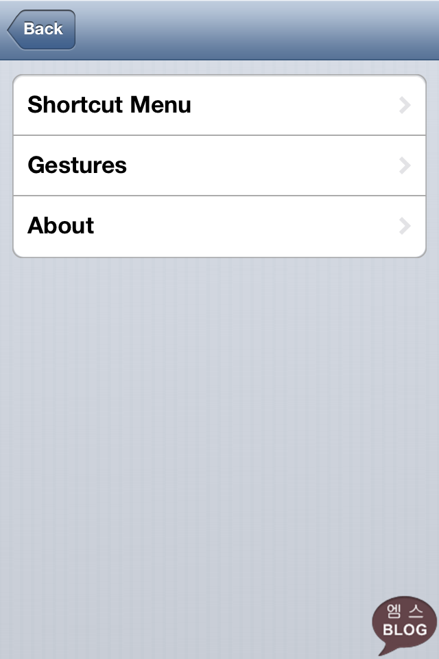 STEP3. Shortcut Menu를 선택한 다음 화면 상단 오른쪽의 + 를 터치합니다. 그리고 아래의 내용을 입력한 뒤 저장합니다.