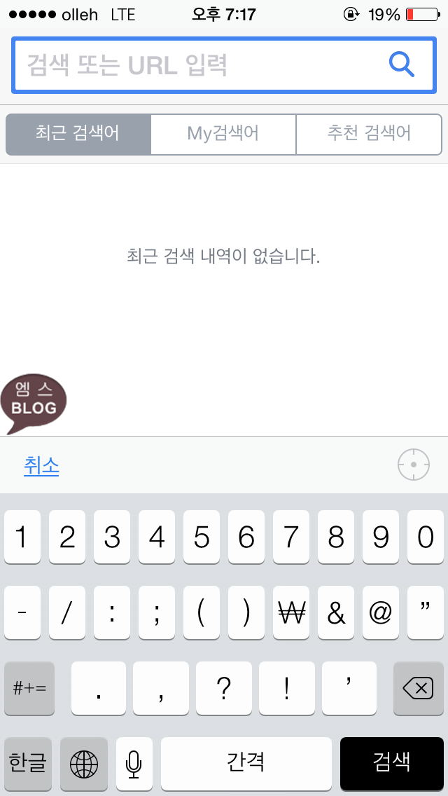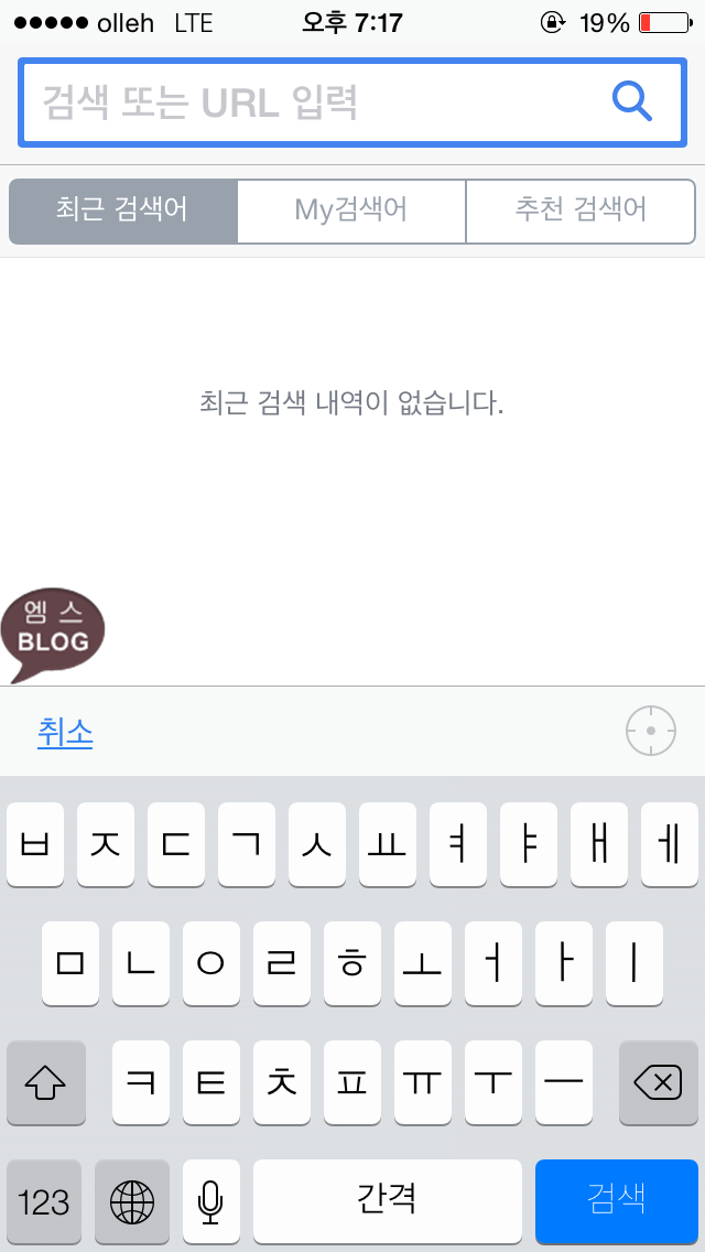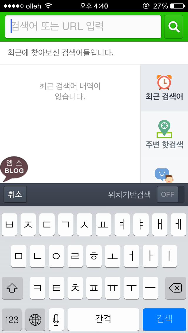 11. 네이버 및 다음 어플에서 키보드의 하단 오른쪽 검색 자판 색깔 변화
