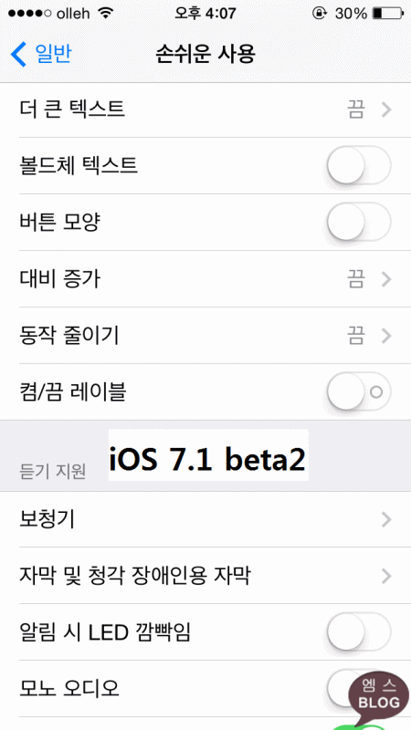 ● iOS 7.1 베타1 업데이트 후 추가된 기능 및 달라진점 내용 정리