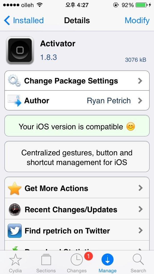 STEP1. Cydia-Search에서 Activator를 검색해서 Install한다.