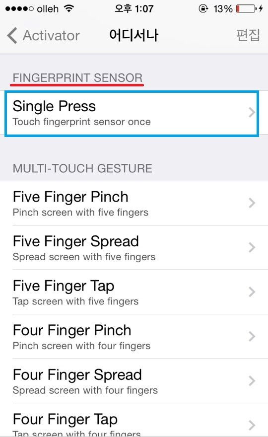 #. Activator 트윅을 이용한 지문인식 기능, 홈버튼으로 활용하기