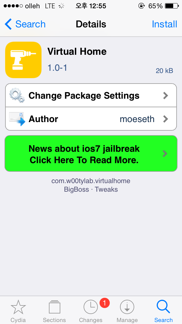 Cydia-Search에서 Virtual Home을 검색해서 Install 한다.