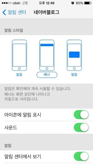 설정-알림센터에서 알림스타일 그림이 안나왔던 버그가 수정되었습니다. 심플한 그림이네요^^