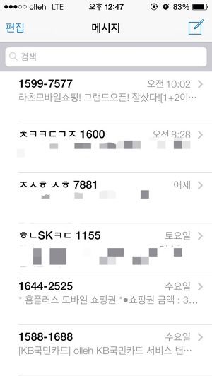 자, 이번엔 iOS7 beta2의 버그입니다. 먼저 메세지 버그입니다.