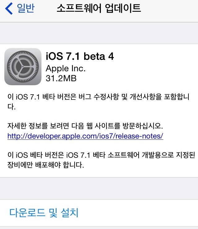 iOS 7.1 베타4 다운로드 링크 및 업데이트 방법, 탈옥안됨