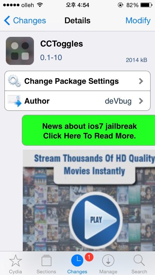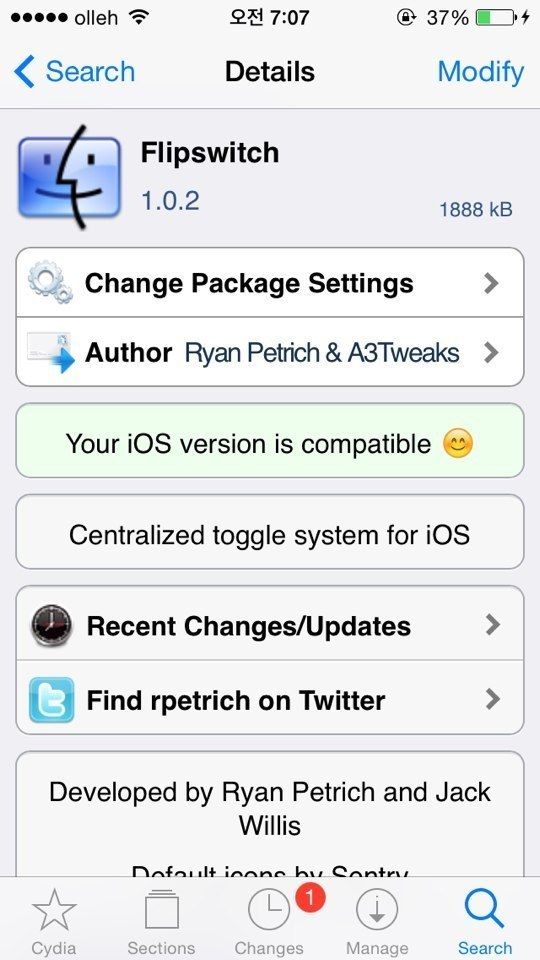 Cydia-Search에서 CCToggles를 검색한 후 Install 합니다. 그리고 트윅이 설치 완료되면 기기는 리스프링됩니다.