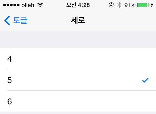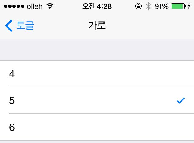 제어센터화면에 보이는 토글 갯수를 설정할 수 있는데요. 세로모드와 가로모드 별로 갯수를 4~6개로 달리 지정할 수 있습니다.