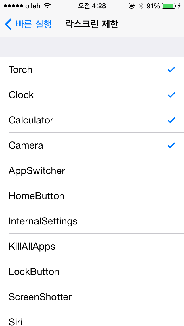 이 트윅의 좋은 점은 제어센터의 토글 뿐만아니라 빠른 실행까지 변경 및 추가할 수 있는 점과 Hiddensettings7이 포함되어 있는 것입니다. 또한, 빠른 실행에는 기기에 설치되어 있는 어플까지 등록할 수 있어 어플들을 빠르게 실행할 수 있습니다. 이 부분은 iOS6에서 사용했던 Appscenter 트윅을 생각나게 하네요.^^