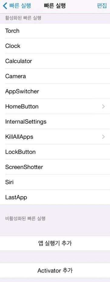 마지막으로 Activator 추가 기능입니다. 빠른 실행의 맨 아래에 위치한 이 기능은 Activator의 기능을 빠른 실행으로 등록해 사용할 수 있게 해주는데요. 아래와 같이 Activator 추가를 터치하고 Undefined Activator를 터치한 다음 사용할 Activator 기능을 선택하면 됩니다.