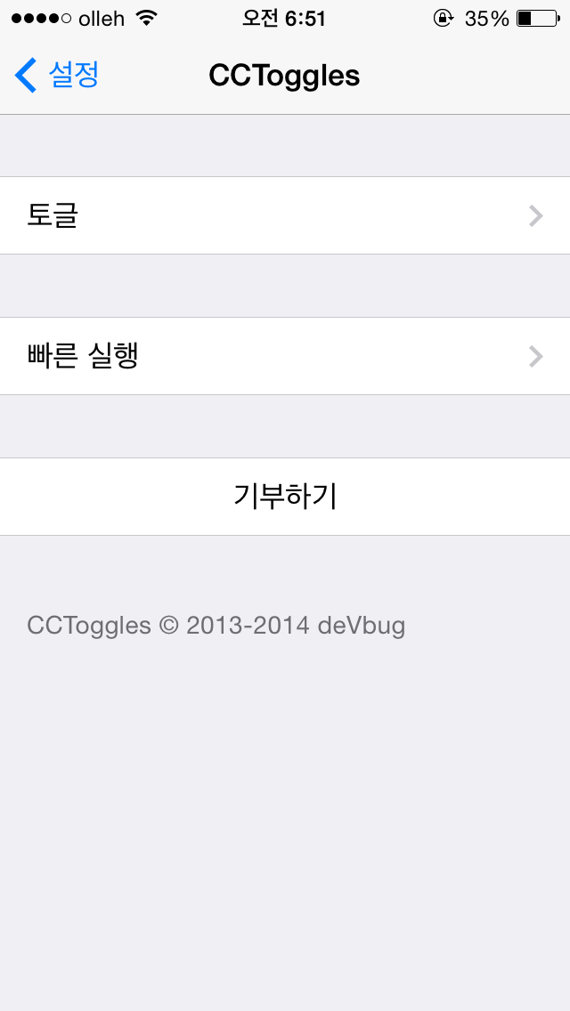 또한 CCToggles 안에 Hiddensettings7 기능도 포함되어 있어 Hiddensettings7를 따로 설치하지 않아도 사용 가능하니 Hiddensettings7를 사용하실 분들은 CCToggles! 강추합니다. 그럼 지금부터 CCToggles에 대해 살펴보겠습니다.