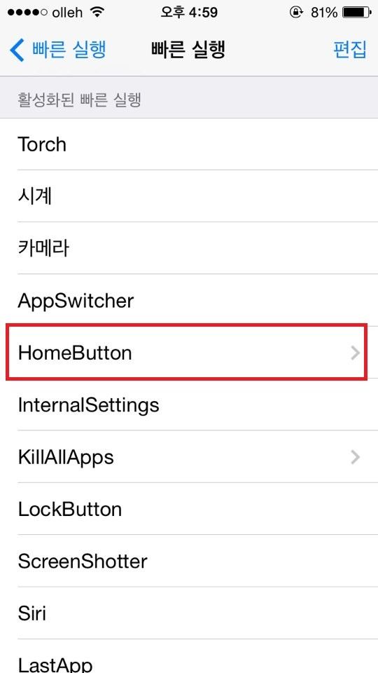1. 빠른실행-HomeButton에 오래 누르기 기능 추가