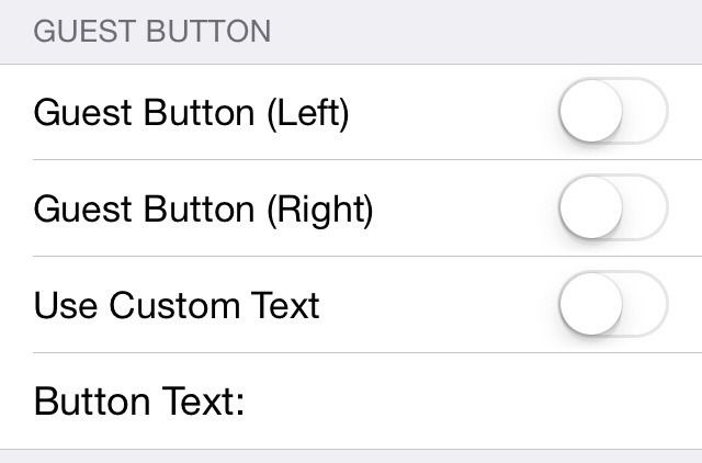 ▲ Guest Button Left / Guest Button Right / Use Custom Text