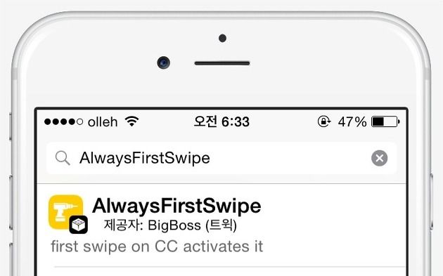 게임, 카메라, 동영상 시청 화면에서 알림센터 및 제어센터를 한번에 나오게 하는 시디아 트윅, AlwaysFirstSwipe [iOS8 호환]