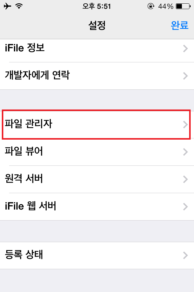 STEP2. 파일관리자를 터치한 다음 어플리케이션 이름 보기 버튼을 활성화 합니다. 그리고 화면 상단 오른쪽의 완료버튼을 누르면 폴더명을 어플이름으로 볼 수 있게 됩니다.