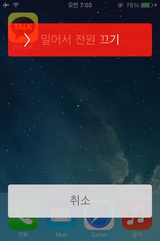 ※ 만약, 재부팅 후 복제된 어플이 나타나지 않을 경우 또는 기존에 있던 어플도 보이지 않을 경우 한번 더 밀어서 전원 끄기를 하면 어플이 나타나게 됩니다.