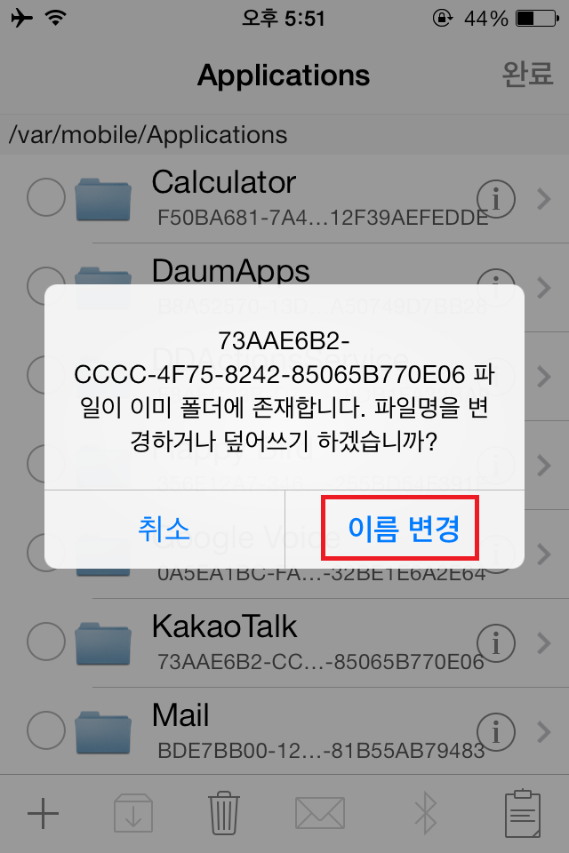 아래는 숫자와 영어 조합의 단어로 보이던 폴더명이 어플 이름으로 바뀐 화면입니다.