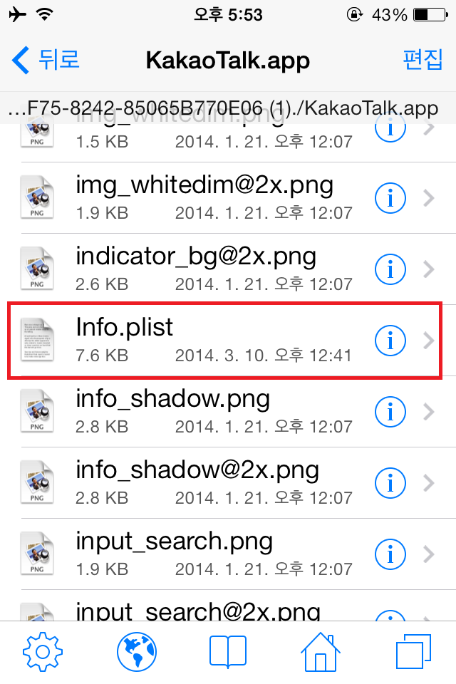 ****.app 폴더 안의 파일 중 Info.plist 파일을 찾습니다. 그리고 그 파일을 터치한 다음 Property List 뷰어를 실행합니다.
