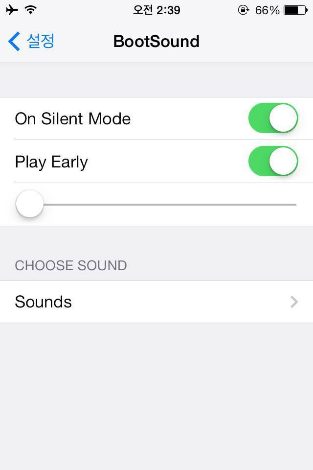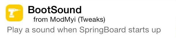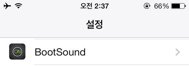 BootSound 트윅은 애플 기기가 리스프링 또는 재부팅될 때 효과음이 나게 하는 시디아 트윅입니다. 시디아에서 BootSound를 검색 후 Install하면 애플 기기의 설정에 BootSound 메뉴가 생기는데요.