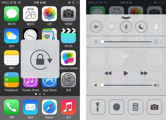 아래는 아이폰 옆면의 진동버튼을 조작했을 때 아이폰 화면에 보이는 회전잠금/해제 그림입니다.