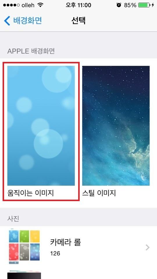 아이폰4 이후에 출시된 모든 iOS7 버전 기기의 배경화면에는 움직이는 이미지가 있습니다.