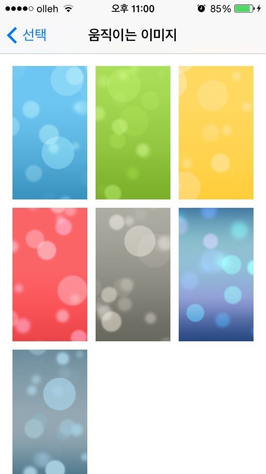 위 그림처럼 아이폰의 움직이는 이미지는 총 7가지가 있는데요. 이것 외에 Blue, Green, Pink, Red, Rainbow 등 5가지의 '숨겨진 움직이는 이미지'를 배경화면으로 적용할 수 있습니다.