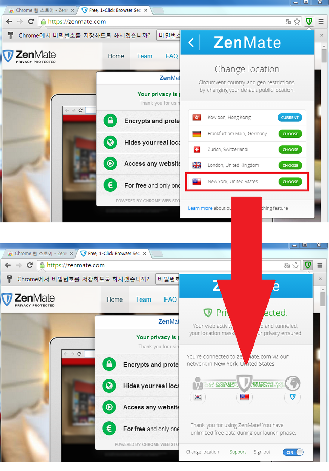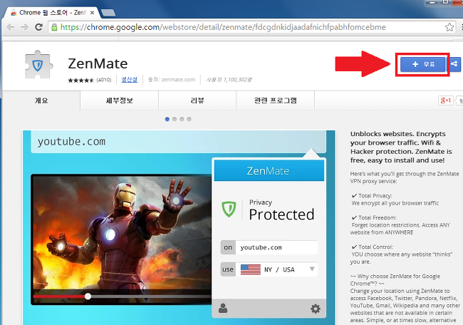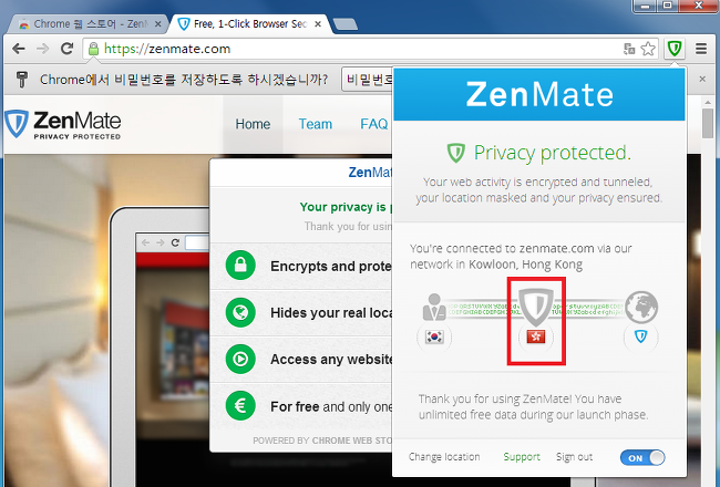 구글 크롬 확장프로그램, zenmate로 IP 우회 접속 방법-불법유해사이트차단 뚫기
