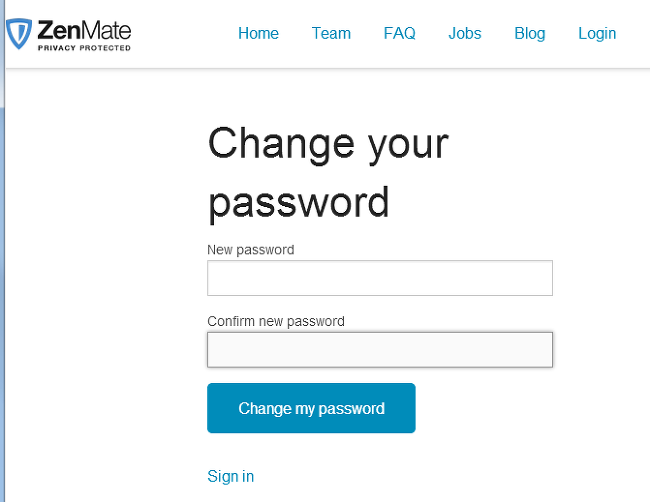 메일 내용 중 Change my password를 클릭하면 아래와 같이 ZenMate의 패스워드를 바꿀 수 있는 화면으로 넘어갑니다.
