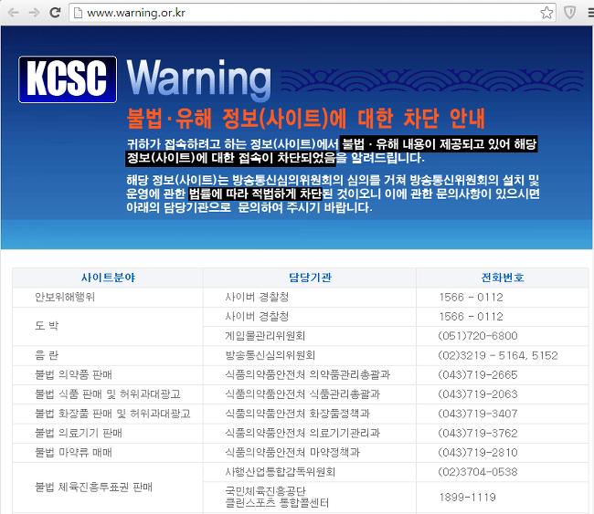 보고보고 토렌트 사이트(http://hi-bogo.net/)를 아시는 분들은 아래와 같은 불법·유해 정보에 대한 차단 안내라는 창을 본 적 있을 겁니다.