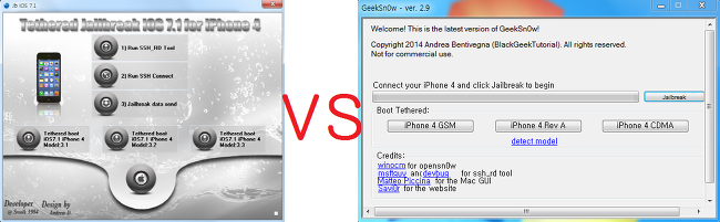 iOS 7.1.1 아이폰4 반탈옥 툴 차이점 비교(iOS Soft Dev Pack / Geeksn0w)