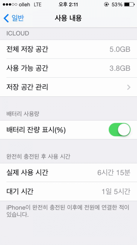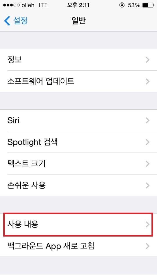 아이폰의 설정-일반-사용내용으로 들어갑니다.