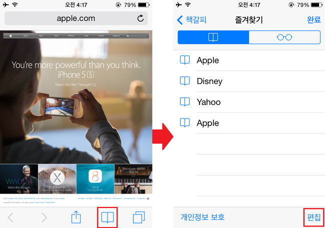 자바 스크립트를 이용한 아이폰 사파리의 책갈피 활용법