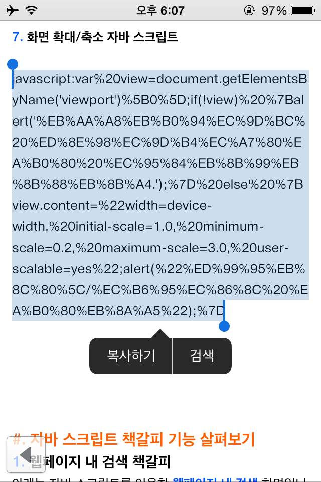 6. 모바일 웹페이지 화면 확대/축소 책갈피