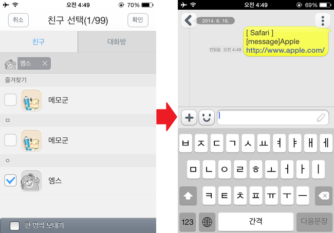 카톡과 마찬가지로 현재 보고 있는 웹페이지 주소를 마이피플 친구들에게 링크로 보낼 수 있습니다.