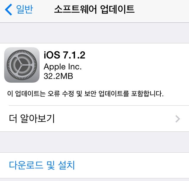 2014년 7월 1일 새벽2시, iOS 7.1.2 소프트웨어 업데이트가 있었습니다. iOS 7.1.1 버전 업데이트 이후 거의 두달만의 업데이트였는데요.