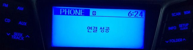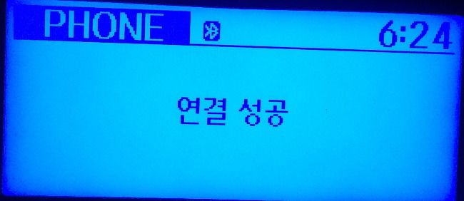 자, 그러면 아래와 같이 차량 오디오 화면에도 블루투스 연결 성공이라는 화면이 나옵니다. 그러면 아이폰과 현기차의 블루투스 연결이 끝났습니다.^^