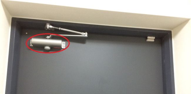 아파트에 사시는 분들이라면 현관문의 윗부분을 보면 아래와 같이 도어클로저(빨간동그라미)가 달려있는 것을 볼 수 있을겁니다.