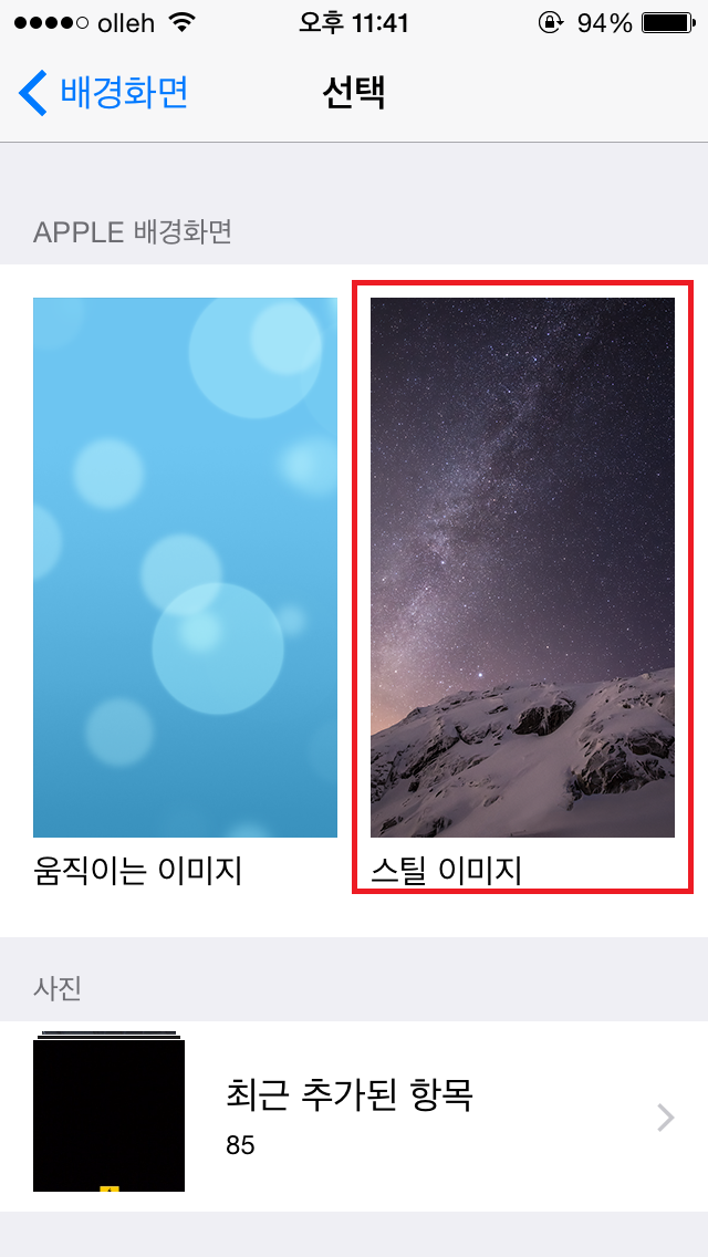 iOS8 새로운 스틸이미지(배경화면)를 iOS7 설정-배경화면에 추가하는 방법