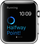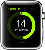 애플워치에 내장된 운동 앱을 이용해 사용자의 걸음걸이 속도, 태운 칼로리, 운동하는 데 소비한 시간 등을 계산해 신시간 통계로 보여줍니다. 또한 운동종목별로 목표를 설정할 수 있고 설정한 목표에 도달하면 애플워치만의 특별한 배지를 적립할 수 있습니다.