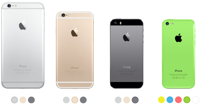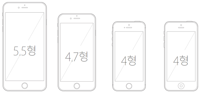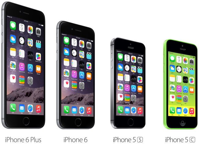 ▲ 왼쪽부터 아이폰6+ / 아이폰6 / 아이폰5S / 아이폰5C