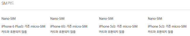 아이폰5S를 사용중이던 분들은 기존의 나노심카드가 아이폰6와 아이폰6+에 호환되기 때문에 따로 구입을 하지 않아도 됩니다.