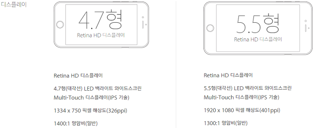 - 아이폰6 : HD해상도(1334×750, 326ppi)