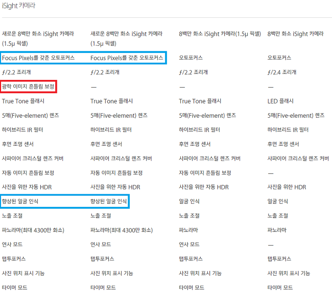 6. 카메라의 광학 이미지 흔들림 보정(손떨림 방지) 기능은 아이폰6 Plus만 지원함