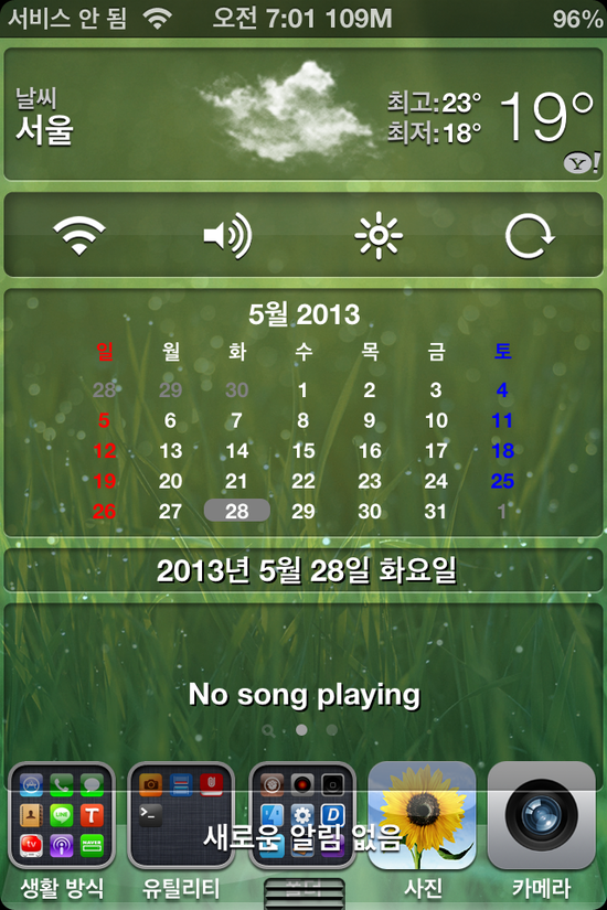 알림센터에 몇몇 트윅들을 활성화 시켜 놓으면 편리하게 이용할 수 있습니다. 우선 알림센터에 활성화가 되는 트윅들을 알아봐야죠..
